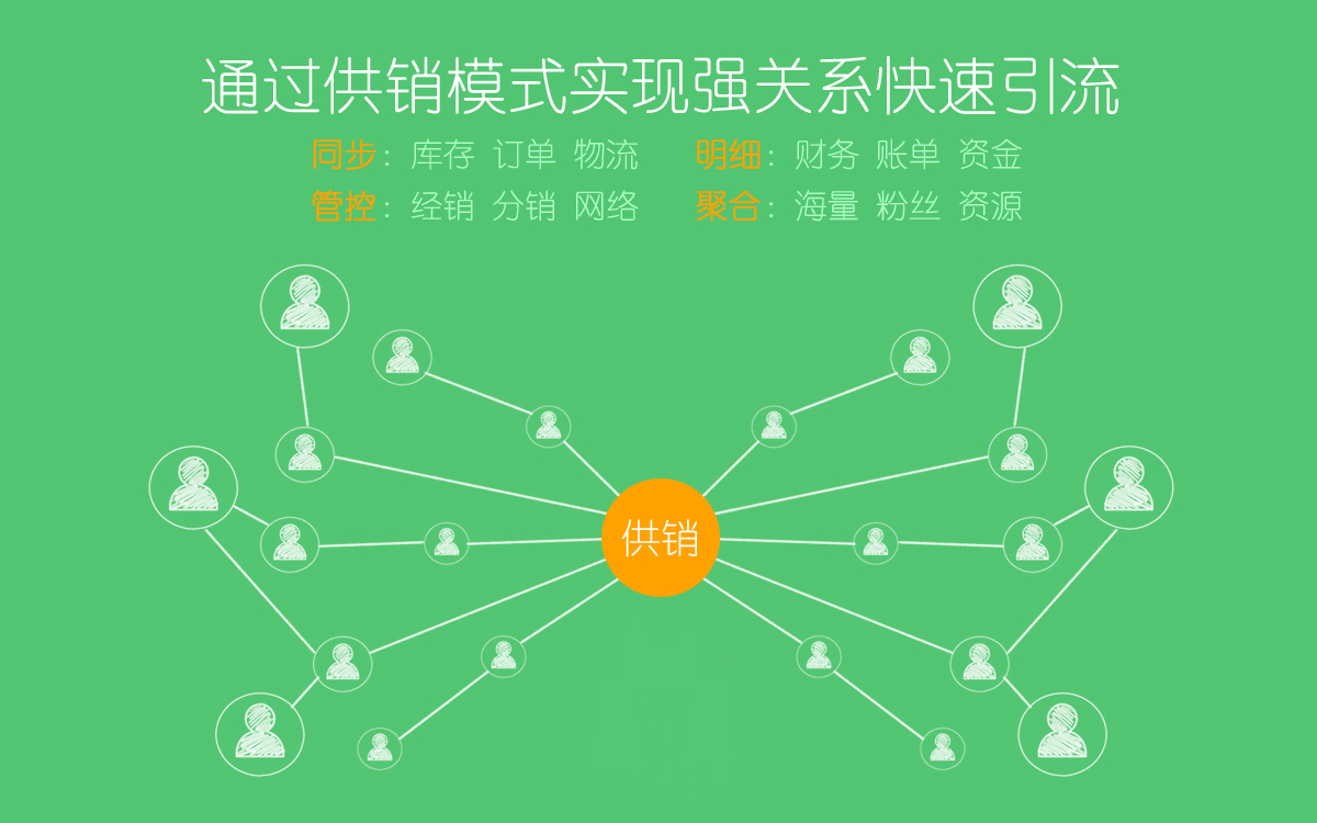 3.裂变增加下级分销商,树立企业的品牌形象,建立属于自己的移动电商营销网络,最大化实现社交流量变现,商家低成本投资,分销商0成本加入,助力传统企业,电商,微商快速转型互联网+模式。信任和分享企业产品,口碑传播,推荐营销。