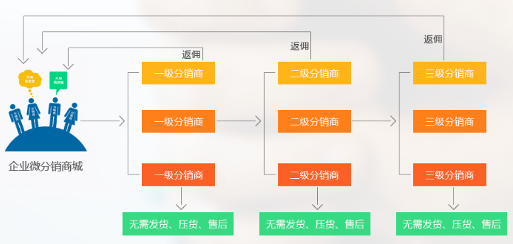 2.三级分销佣金方案设置主要分为推广佣金和销售佣金两种,销售佣金即是有产品售卖后三个级别之间发放佣金,推广佣金是在朋友圈,社交平台推广的时候吸粉或者引得粉丝关注时可得到的佣金奖励。不管是哪一级分销商卖出,得到了销售佣金的比例都是一致的。而推广佣金是指每一个分销商的下级分销商卖出商品,上级分销商可以拿到推广佣金。推广佣金最多只有两级。