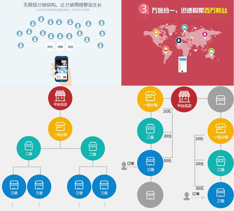 不管是个人还是商家,都可以成为您的分销商,通过自身的社交网络迅速将产品销售至其朋友圈的每个角落。大家都知道微信粉丝数量是有上限的,微信三级分销系统后台的分销商管理模块,可以帮你全员分销,让你的会员像多米诺骨牌式连锁发展,引爆细胞效应。一变十,十变百……深度挖掘每一个人的六度人脉潜在商机,快速拥有最广泛的微信分销渠道,将人脉直接转换成销量!