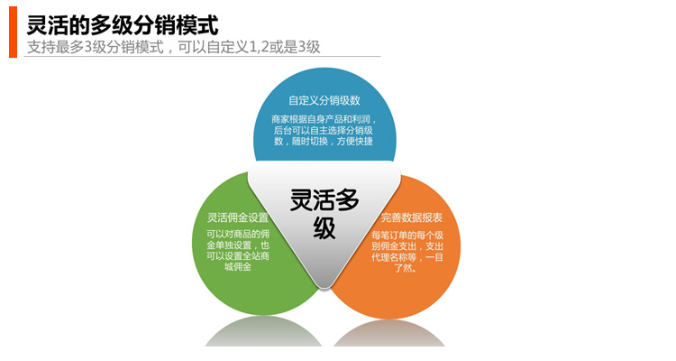 三级分销商城系统多少钱?微信分销模式利润分成多少?微信公众号分销系统,微分销是大数据时代背景下,企业数据营销的必经之路,是基于微信公众平台定制研发,专门为品牌公司和商家提供微信连锁商城、微分销渠道的三级分销微信商城体系,微分销助力商家高粘度、快速将自媒体转化为自有分销商。