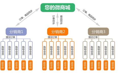 微信三级分销系统是以三级分销模式为基础,而微信二级分销模式是总店通过推广确定一级分销商A;一级分销商往下发展一级即为二级分销商B;二级分销商继续往下发展,只限任意两级有利益关系:也就是说,若微信分销系统中分销商C继续发展下一级D,则这一级分销商跟原本第一级分销商A毫无利益关系,不构成一个微信特色分销模式范围,只限任意特色有利益关系。总体来说,二级分销的传播速度较慢一些,发展分销商的数量少些。