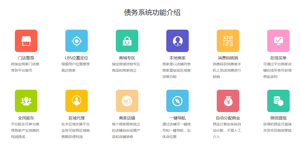债务抵用,积分商城消费系统,是一款针对性的创业型平台,平台采用互联网思维模式,将其他人要不来的债务抵换成商城的消费券,可拿消费劵在商城进行消费,平台集合各种商家,每个商家可根据平台之间的合作模式设置使用消费劵的比例,债主可以消费劵+现金模式在平台上进行消费,平台拥有强大的计算功能、商家入驻功能、实用的营销功能、微信支付、APP等主流功能一应俱齐。