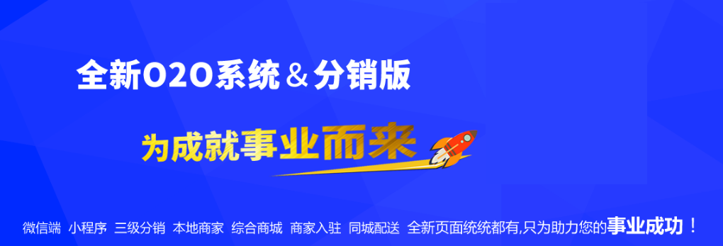 O2O模式系统开通微信端,小程序,三级分销,本地商家,综合商城,商家入驻,同城配送,全新页面统统都有,只为助力您的事业成功。
