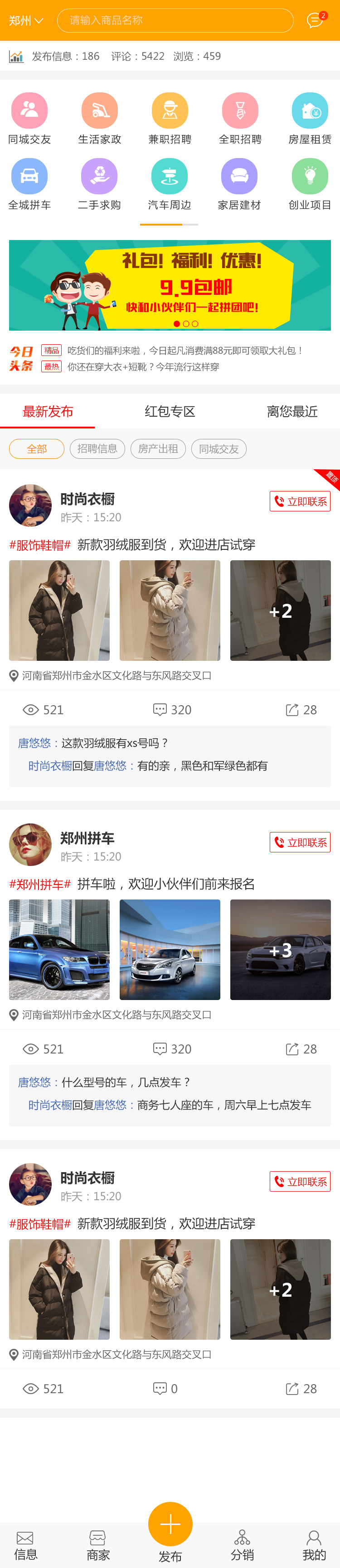 同城支持查找、浏览、发布全国近400个城市的生活信息,是您最贴心的生活帮手,房屋租售、二手买卖、招聘求职、汽车租售、宠物票务、餐饮娱乐,覆盖全国所有大中城市,同城模块包含了本地生活中求职招聘、吃喝玩乐、买卖二手等生活服务类目,类似一个基于微信平台的同城论坛。在运营层面,可以考虑利用小程序的线下优势,与商家合作分布二维码。盈利方面,主要可以考虑传统商家的广告发布及各类营销活动的举办,是本地社区运营者不可缺少的模块!