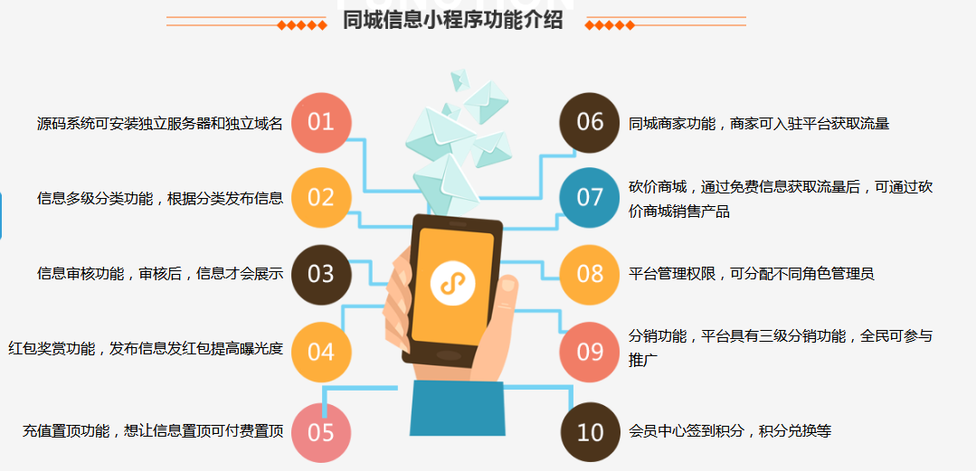 现在微信已有9亿多用户,在9亿的用户里,你有个小程序,就相当于在人来人往的市中心你有个店铺,引流起来是方便很多的。“小程序分类信息平台作为分类入口的优势就可以发挥出来:在发展迅速和清晰的领域,后期可以寻找一些能进行高效业务整合的伙伴,然后投资,把生态越做越大。分类信息系统小程序,分类信息发布系统多少钱?