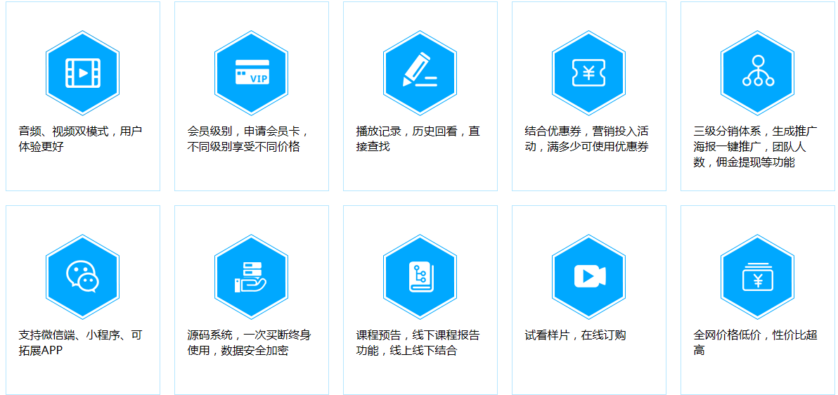 3、在线课程。可以实现录播视频、互动等功能(是否可以直播未知),降低了开发APP的技术成本和资金投入。