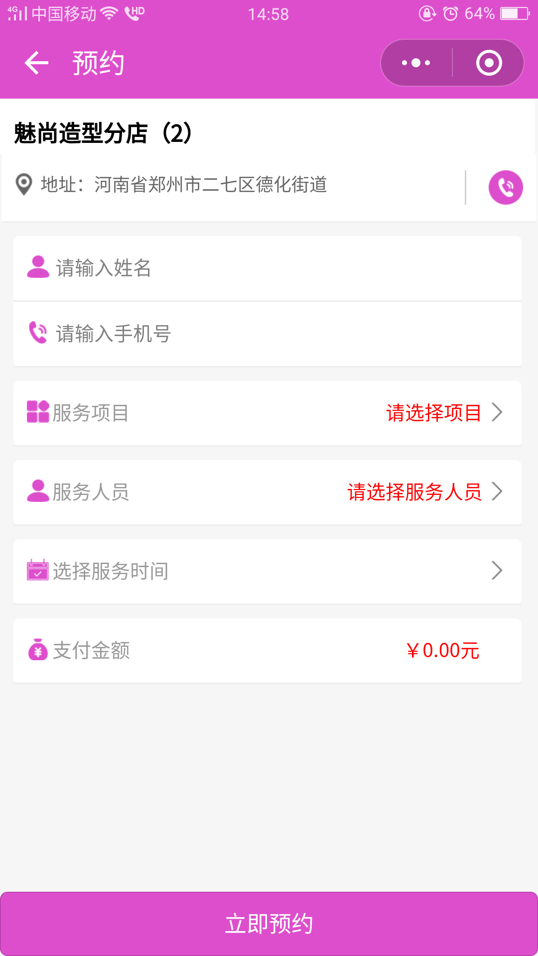 美容行业微信小程序预约功能: