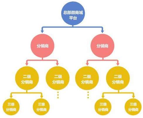 企业在微信商城平台上开通线上商店,这是第一级分销系统,企业的员工和营销人员可以在企业的分销系统上再开通二级商店,企业员工和营销人员的亲戚朋友在二级商店的基础上再开通个人商店,属于三级分销。就这样,形成三级分销系统。