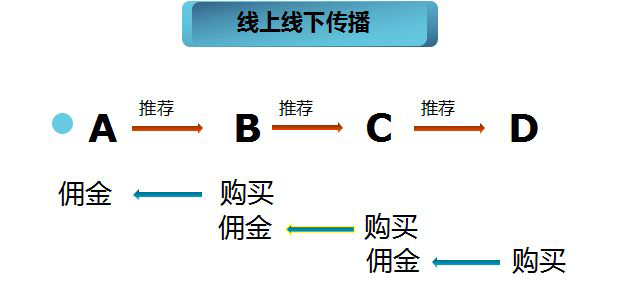 A自己销售产品,拿产品销售佣金30%;B销售产品,A拿下级佣金20%;C销售产品,A不拿任何钱。这仅仅只是单级二层的佣金模式,升级后可获得分销商升级奖励。