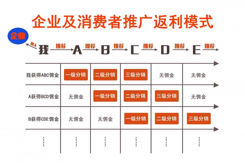 三级分销说白了就是代理商制度,只是将传统的代理商盈利模式搬到了线上。商家或者个人通过网络平台(公众号、小程序、app)将自己的产品或者服务放到了线上,把会员和消费者变成分销商,通过分享+信任经济模式,发展三级分销商,每一级分销商均可以往下再发展两级分销商,通过二维码自动绑定上下级关系。谁卖出谁拿销售佣金,分销商可以无限裂变,分销商销售佣金可设置每个级别获取不同;每一个分销商的下级卖出商品,上级分销商可以拿到推广佣金,推广佣金最多三级。