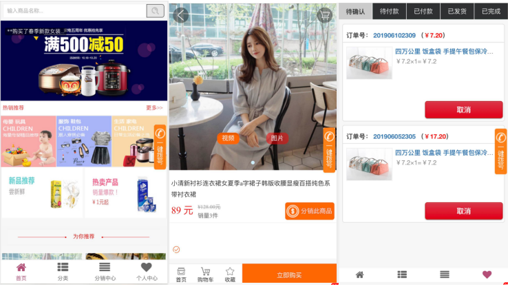 分销二维码海报:根据后台设置的关键字自动生成分销二维码海报,用户扫描关注公众号即可成为其一级普通会员并可获得相应积分,积分可购买指定商品; 微信模块消息,订单支付完成、商家发货等动态均提供推送公众号模板消息通知用户;共享微信地址,订单地址无需重复填写,系统自动获取微信地址;红包返现,根据后台设定每个商品的返现,确认收货后,自动给用户发送红包;积分抵扣,用户可从签到、购买商品、评价方式获取积分,积分可以抵扣商品金额;手机端管理中心,管理员无需登录电脑便可在微信查看及操作订单