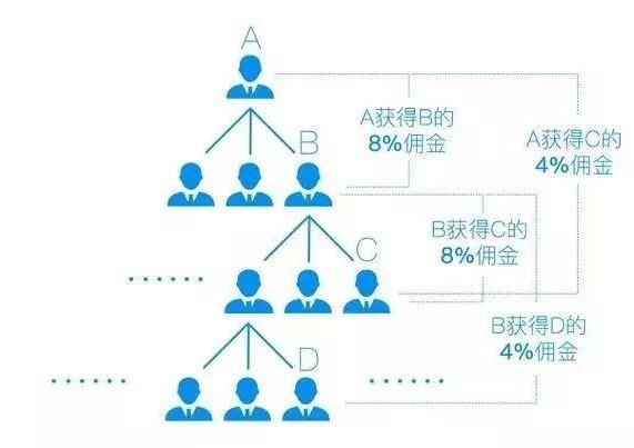 另外,分销模式还可以进行无限的裂变,如下图中A、B、C、D所示。