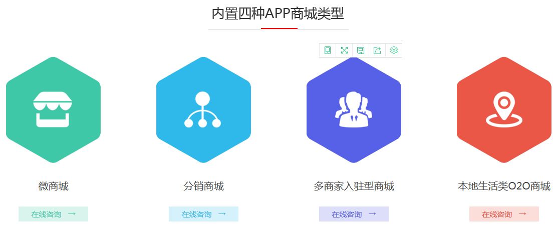 内置四种APP商城类型,四种方式任意选择,微商城+分销商城+多商家入驻型商城+本地生活类O2O商城。开发出更具有创新的APP,快打包+快开发+快建站+模板store。