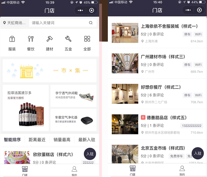 【功能模板】:门店列表/门店详情/优惠买单/卡卷领取/商家入驻/位置定位/门店搜索等