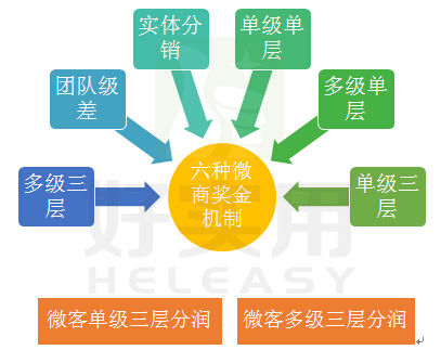 分销根据微客与微商性质的差异两种微客三层分润 6种微商团队奖金双重分润体系,两重模式有机组合,满足不同行业客户实际需要,助力企业借助微商渠道升级转型,让千万微商成为企业真正的分销渠道。