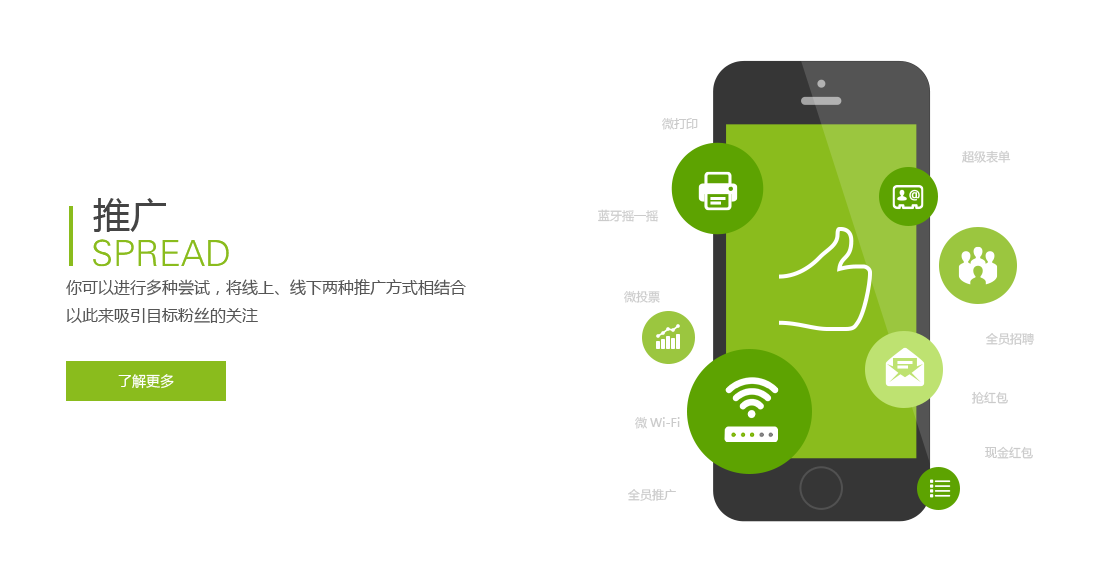 互联网+时代很多的传统企业还不知道如何进入微营销,不知道如何做好三级分销,传统的企业营销工具不完善,微信提供了公众号平台给企业使用,平台里很多功能像支付,浏览等都可以实现快速微营销。传统的中小型企业规模小,成本低,技术实力还不足以能够开发一套规模有保证的系统满足产品的有序健康营销。