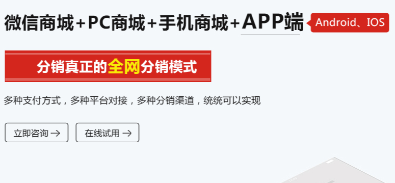 公司针对不同领域研发的分销系统,七大产品根据行业特点定制开发。例如B2C分销系统,O2O分销系统,企业多用户分销系统,教育行业分销系统,天然工坊分销模式,多门店分销系统,手机号专卖分销系统。
