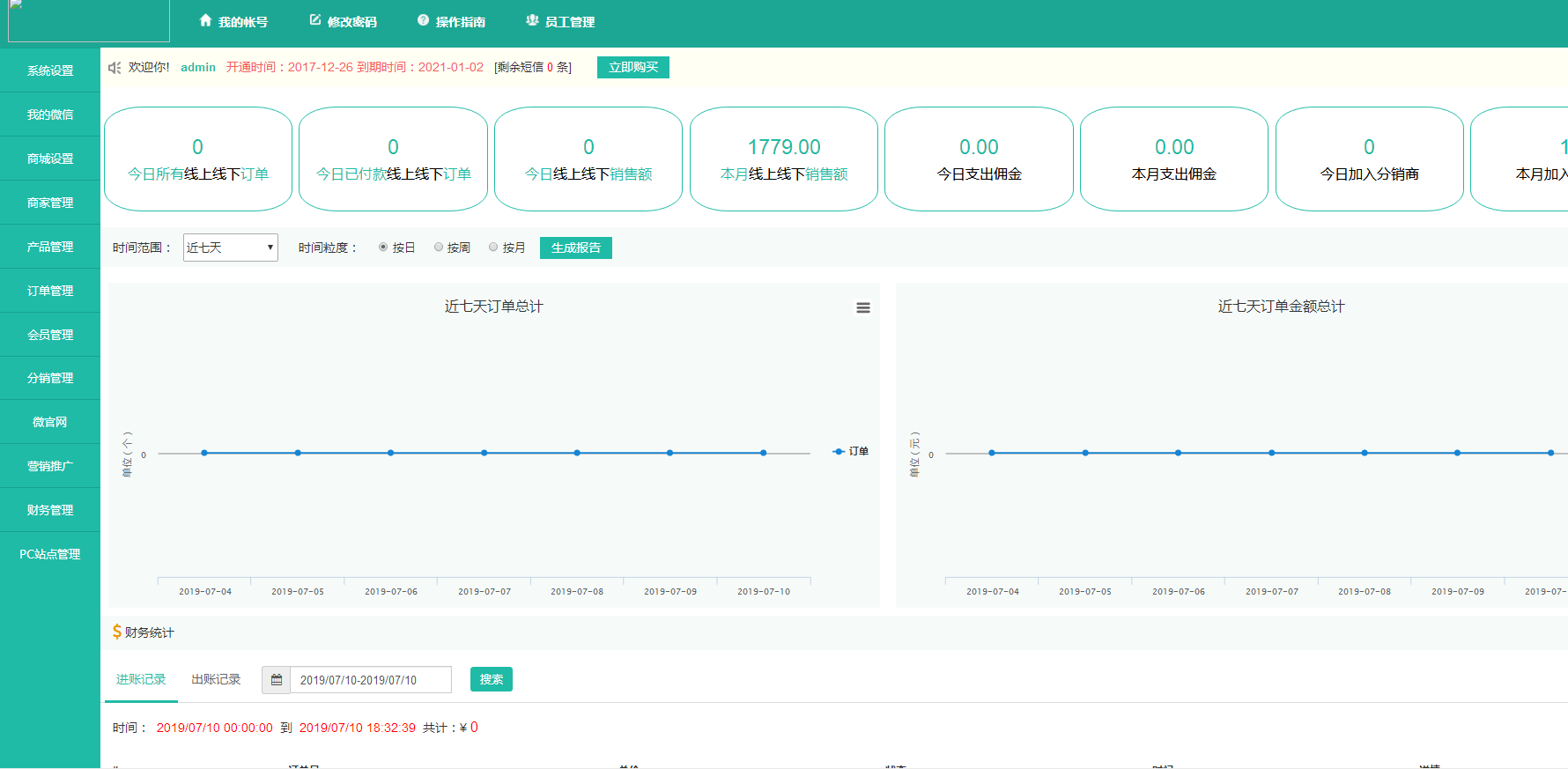 商城设置-默认佣金设置